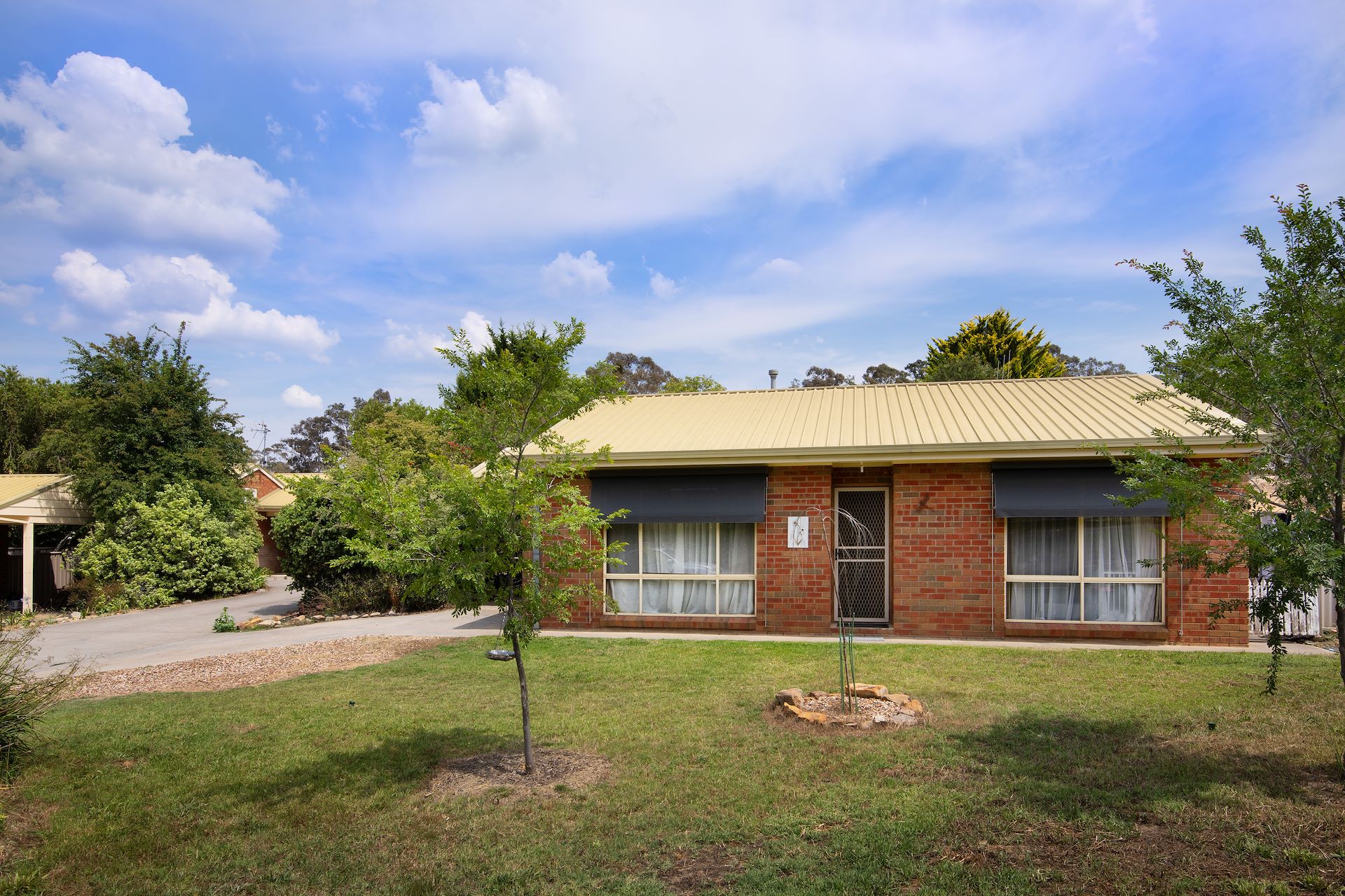 Nicely positioned at the front of this unit block, this neat Solid Brick townhouse will make somebody a great new home. Set on a level, nearly 400 square metre garden, the home comprises 2 bedrooms with built-in robes, a spacious and light open plan living area with reverse cycle air conditioning, spacious kitchen, and neat separate bathroom and laundry rooms. The property has a carport, pathways and lovely garden. Close to all Castlemaine has to offer and conveniently located opposite a bus stop.