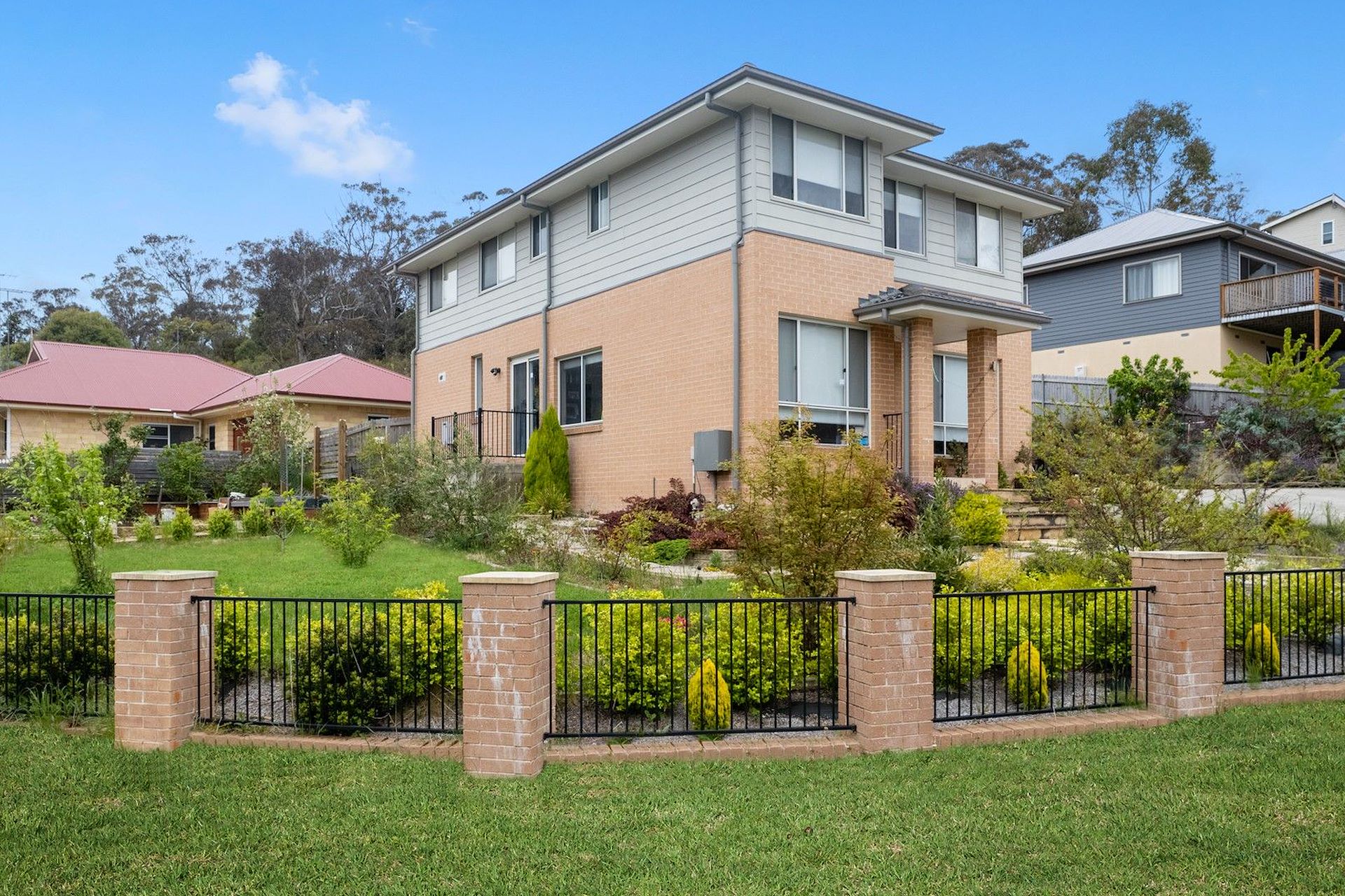 Nestled on a sunlit corner in a charming street of Katoomba, this near-new residence is only five years old and showcases a fusion of style and quality, offering coveted contemporary living. Designed to maximize space and serenity, this modern masterpiece boasts five bedrooms, spanning across two spacious storeys. Situated on a desirable corner block, this property offers the perfect blend of contemporary design and serene surroundings. With a thoughtfully designed layout, the light-filled interiors create an inviting ambiance, making every room feel warm and welcoming. The master bedroom is a true sanctuary, featuring a generous walk-in robe and a luxurious ensuite. The upstairs study provides a quiet space for work or relaxation, while the other additional three bedrooms are all spacious, with easy access to the large main bathroom, with shower and separate deep bathtub. Downstairs, the floorplan has been well considered with entertaining in mind, with living spaces that allow for easy connection while also providing separation. The large, modern kitchen boasts a stainless-steel gas oven, dishwasher, and a large walk-in pantry, and sits parallel to the dining room. Sliding glass doors lead you out to the paved, tiered gardens, providing ample space for outdoor dining or relaxation. The cosy loungeroom has large windows that fill the space with light, while also taking in the leafy bush outlooks. Located on the lower level, there is also a fifth bedroom, bathroom, and generous laundry. This extremely peaceful pocket of Katoomba has a bus stop close by and is only a four-minute drive to Katoomba Village, 1km from Katoomba sports and Aquatic Centre, 3.4km from the stunning Three Sisters, bush walks and close to excellent schools and all practical amenities. * Open light filled kitchen with ample storage * Generous ensuite, upstairs main bathroom with deep bath and separate shower, and third bathroom located on the ground floor * Four bedrooms upstairs with a fifth located on the ground level * Ducted reverse cycle air-conditioning and gas bayonet heater * Partially furnished or unfurnished * Large laundry with direct access to the back garden * 775sqm of land with established, tiered gardens and 2 tanks for watering Contact us to register your interest on this home. Ignite applications accepted through realestate.com.