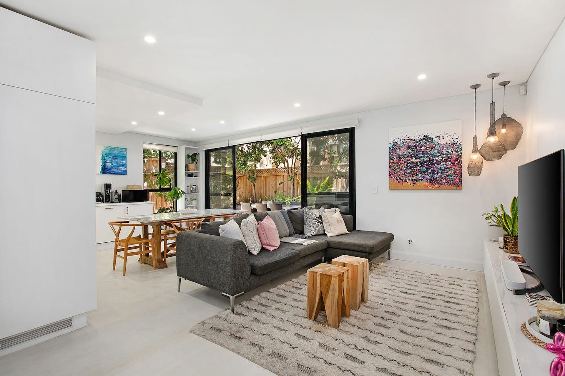 Garden apartments this close to the beach are a rare find in Bondi and this stylish designer apartment offers a spacious 180sqm approx layout that's perfect for the entertainer. Secluded to the peaceful rear of a boutique collection, the semi-style apartment is wrapped in a landscaped courtyard with a relaxed indoor/outdoor flow and a private entry adding to its house-like feel. Custom appointed interiors take their cues from its beachside setting with whitewashed floorboards and designer finishes setting a mood of laidback luxury that's perfectly suited to barefoot beachside living. Step outside and immerse yourself in Bondi's vibrant surf and cafe culture with Hall Street village just around the corner. - Secure block of 10 with level access and a private entry - 2 large bedrooms with built-ins open to a sunny courtyard - 2 bathrooms, master with an ensuite with a double vanity - Spacious glass-fronted living opens to a large courtyard + Entertainer's terrace with banquette seating, beach shower - Beachy white kitchen, European appliances, gas cooktop - Custom finishes, designer lighting, separate internal laundry - Secure lock-up garage plus visitor parking (internal access) A distinct neighbourhood that hugs Bondi Road, this small pocket is all about shopping, eating and drinking. Whole foods and organic produce are at the core of most menus. Only a short stroll to world famous Bondi Beach and offering quick access to Sydney's CBD, Bondi will always be in high demand. - sitchu