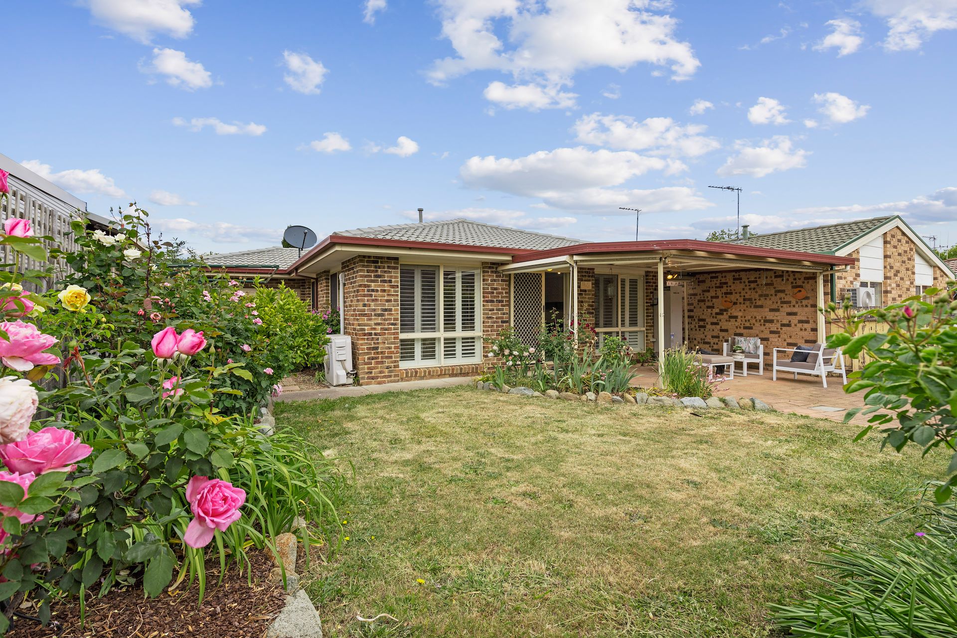 Exuding charm and a quiet sense of peace and tranquility, we welcome you to this beautiful three-bedroom home located next the Belconnen Golf Course. Enjoy year-round natural light and warmth with a northeast aspect to the rear whilst gorgeous plantation shutters frame the pretty garden views outside. The home also comes complete with split system air conditioners to keep you comfortable throughout the year. Recently re-painted throughout, the bedrooms feature built-in robes for ample storage. Relax and entertain on the covered patio overlooking lush cottage gardens. The established gardens showcase an abundance of pretty, flowering shrubs and a collection of stunning rose varieties. Positioned within a peaceful cul-de-sac, additional features include a single lock-up garage, and an excellent energy rating of 4.0. * Three bedrooms, two of the bedrooms feature walk-in-robes, ensuite-style two-way bathroom, laundry built in to the kitchen * Spacious kitchen with Smeg induction cooking and oven, electric hot water * Open-plan living areas that flow onto the north east facing backyard and paved patio with professionally built pergola * Two split system air conditioners for heating and cooling, a gas wall heater, an excellent energy rating of 4.0 * Gorgeous established country-style gardens full of generous plantings of roses, ornamental shrubs and trees * Single lock-up garage with auto-roller door and drive-through access to the backyard * Located in a quiet cul-de-sac meeting up to the Belconnen Golf Course * Five minute drive to Kippax Fair, Ten minute drive to Westfield Belconnen, walk to Magpies Golf Club Rates: $2,413pa (approx.) Land Tax: $3,656pa (approx. if rented out) UCV: $368,000 (2023) Whilst all care has been taken to ensure accuracy in the preparation of the particulars herein, no warranty can be given, and interested parties must rely on their own enquiries. This business is independently owned and operated by Belle Property Canberra. ABN 95 611 730 806 trading as Belle Property Canberra.