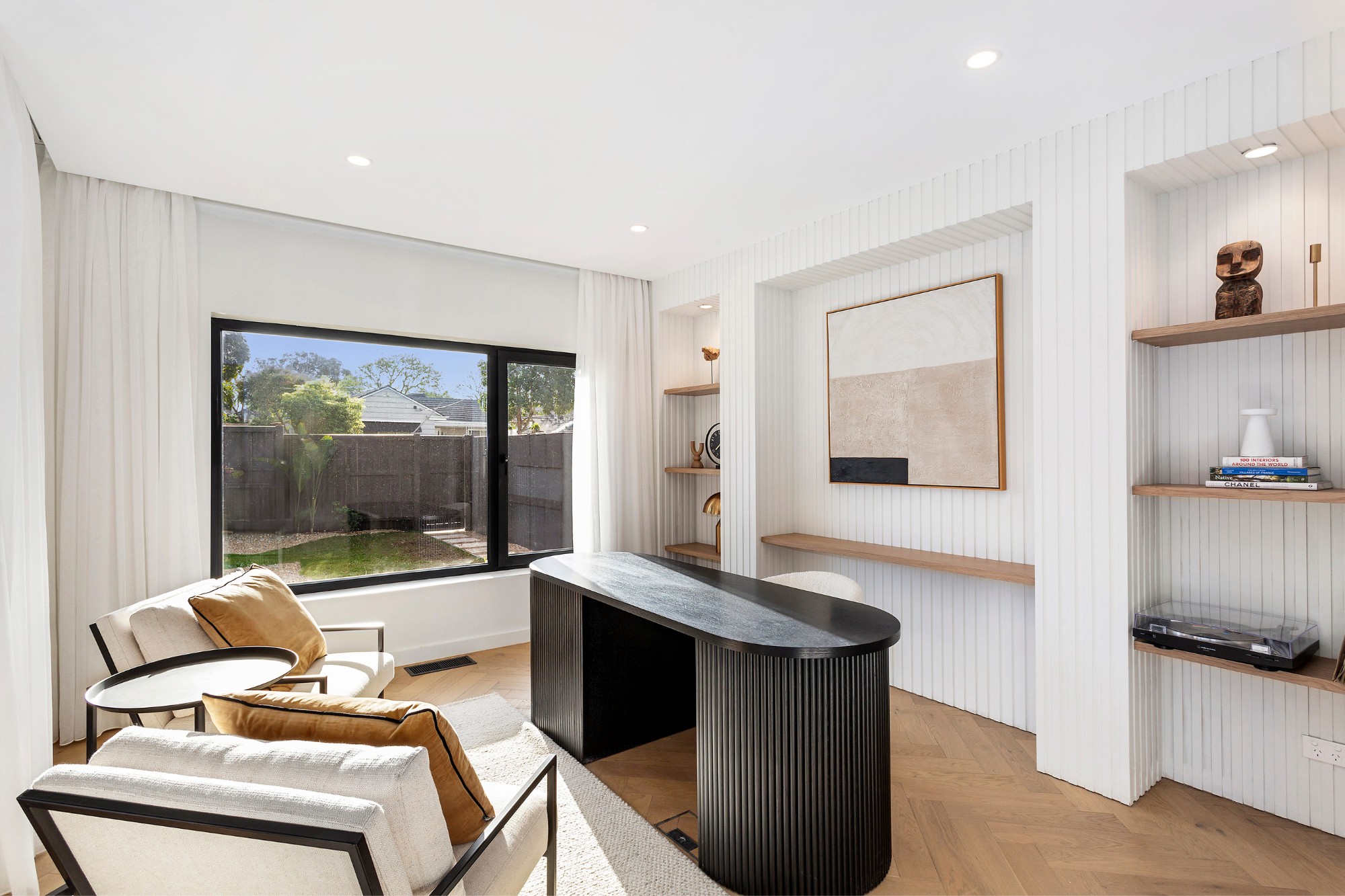 Perhaps the biggest drawcard of this property is the self-contained studio bedroom, separate from the main quarters. Drenched in natural light which has been teamed with a calming colour palette, it’s a hardworking, multifunctional space complete with an office nook and mini kitchenette.
